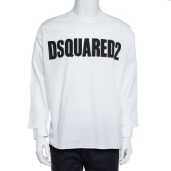 Dsquared2 White Logo Print Cotton Long Sleeve Shirt XL