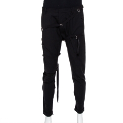 Dsquared2 Black Wool Harness Detail Biker Trousers L