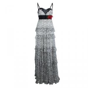 Elie Saab Black Lace Embroidered Flared Midi Dress S