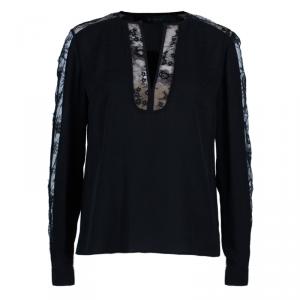 Elie Saab Black Floral Lace Ruffled Sleeve Detail Shirt M