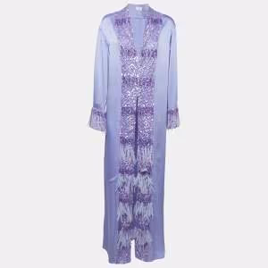 Elisabetta Franchi Blue Rib Knit Belted Long Cardigan M