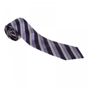 Pre Owned Ermenegildo Zegna Pink and Navy Blue Diagonal Striped Patterned Silk Jacquard Tie