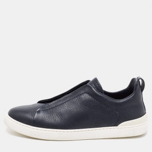 Ermenegildo Zegna Couture Black Woven Leather Pelle Tessuta Slip On Sneakers Size 43