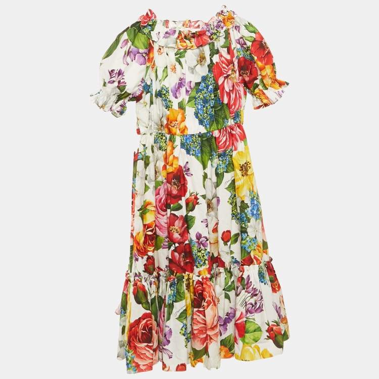 Dolce & Gabbana Kids Multicolor Floral Print Cotton Tiered Dress 11/12 Yrs