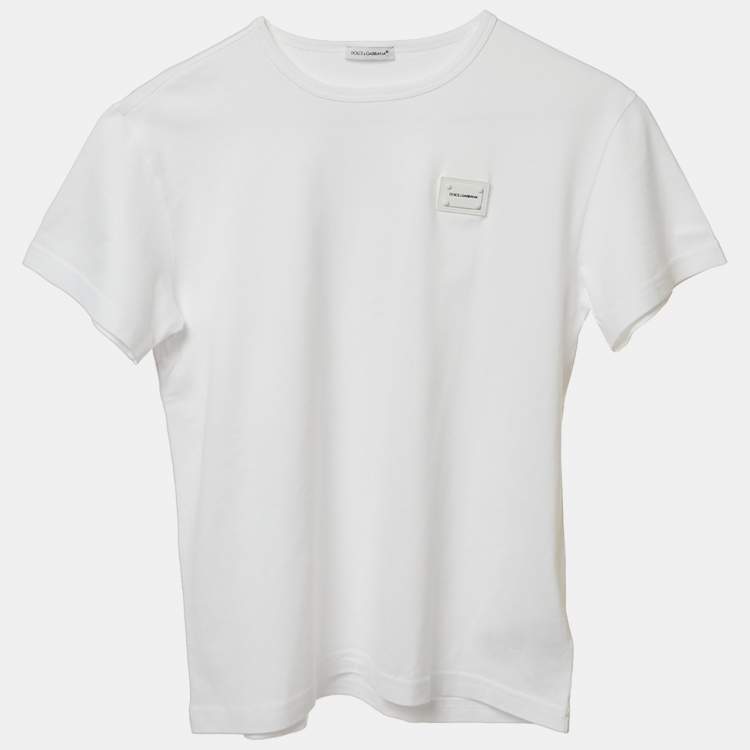 Pre Owned Dolce & Gabbana Kids White Cotton Logo Plaque Detail T-Shirt 9-10 Yrs