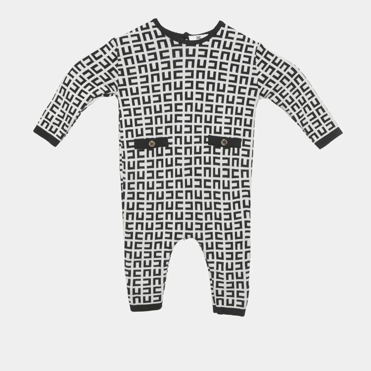 Elisabetta Franchi Black/White Monogram Knit Sleepsuit 6M