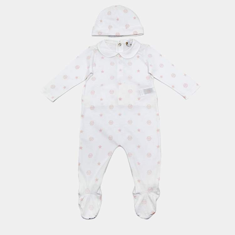 Pre Owned Philip Plein Baby White Printed Cotton Onesie Set 6-9M