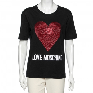 Love Moschino Black Logo Printed Cotton Heart Embellished T-Shirt M