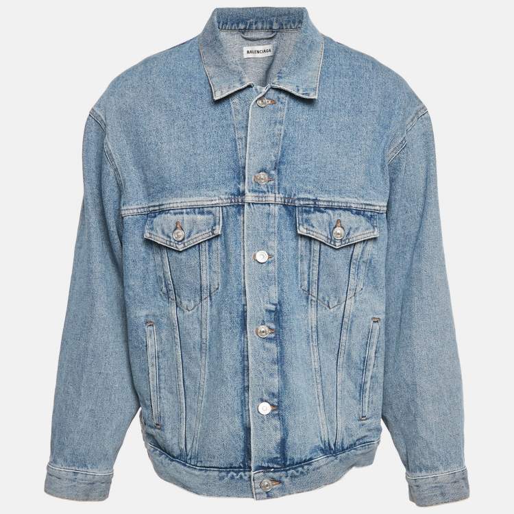 Balenciaga Blue Logo Print Denim Oversized Jacket S