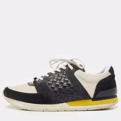 Bottega Veneta White/Black Intrecciato Leather and Suede Lace Up Sneakers Size 42