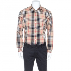 Burberry London Beige Nova Check Cotton Long Sleeve Button Front Shirt M