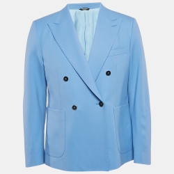 Dolce & Gabbana Blue Gabardine Tailored Double Breasted Blazer XL