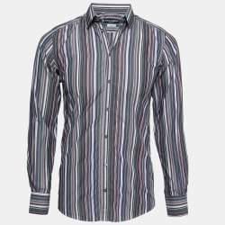 Dolce & Gabbana Multicolor Striped Cotton Button Front Gold Shirt S