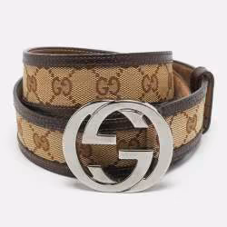 Gucci Interlocking G 95 CM Buckle Belt Beige/Brown GG Canvas and Leather