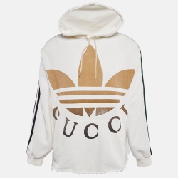 Gucci White Logo Print Cotton Hooded Sweatshirt S