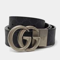 Gucci Black GG Canvas and Leather Cut to Size Reversible Buckle Belt