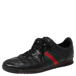 Gucci Black Guccissima Leather Low Top Sneakers Size 43.5