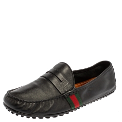 Gucci Black Leather Web Penny Loafers Size 41.5