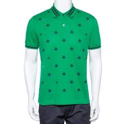 Gucci Green Cotton Pique Bee Embroidered Polo T-Shirt M
