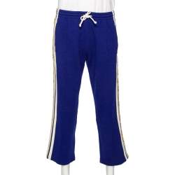 Gucci Blue Wool Logo Side Strip Detail Cropped Track Pants M