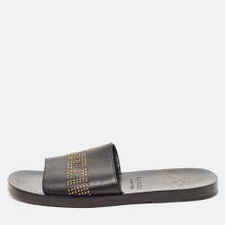 Gucci Black Leather Studded Bee Logo Slides Size 43