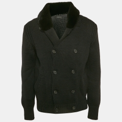 Prada Black Wool Dyed Nutria Fur Trimmed Cardigan XL