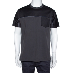 Prada Charcoal Grey Stretch Cotton Paneled Crew Neck T-Shirt XXL