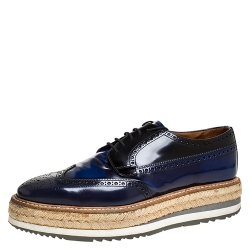 Prada Blue/Black Brogue Leather Derby Espadrille Sneakers Size 41