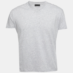 Prada Grey Cotton Short Sleeve V-Neck T-Shirt XL