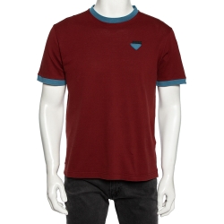 Prada Maroon Cotton Pique Contrast Trimmed Crew Neck T-Shirt M