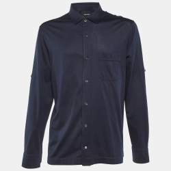 Tom Ford Navy Blue Checkered Cotton Button Front Shirt M