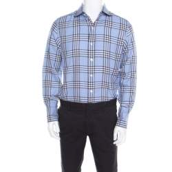Tom Ford Blue and Grey Plaid Cotton Classic Shirt XXL