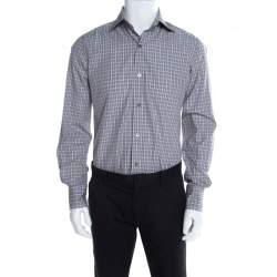 Tom Ford Purple and White Checkered Cotton Button Front Shirt L