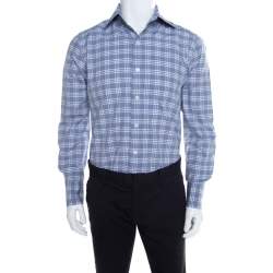 Tom Ford Blue and White Checked Cotton Long Sleeve Shirt L