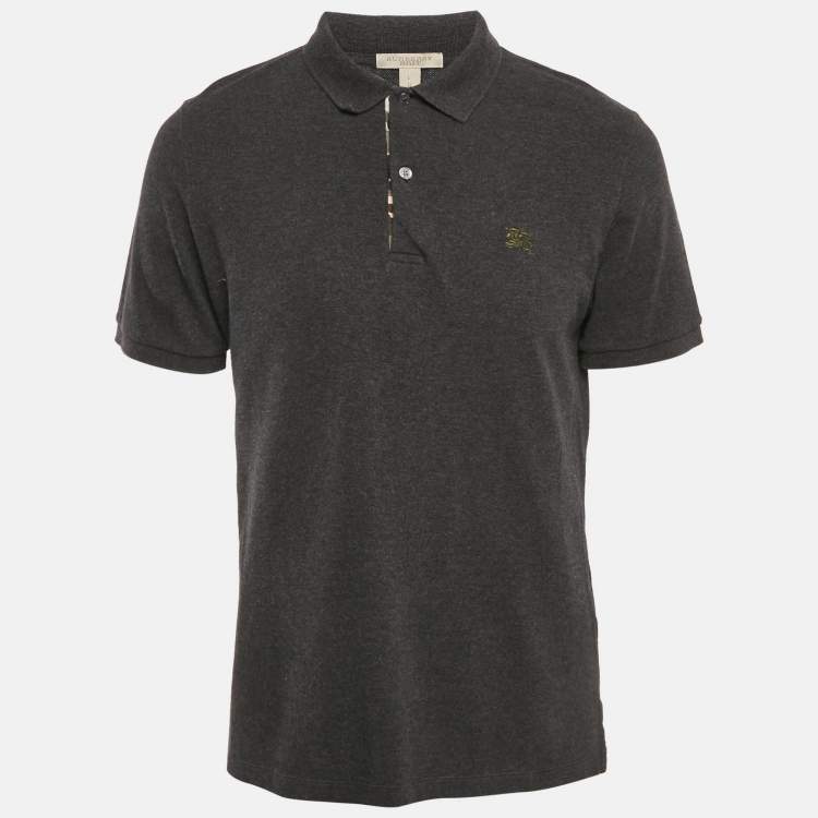 Burberry Grey Logo Embroidery Cotton Polo T-Shirt L