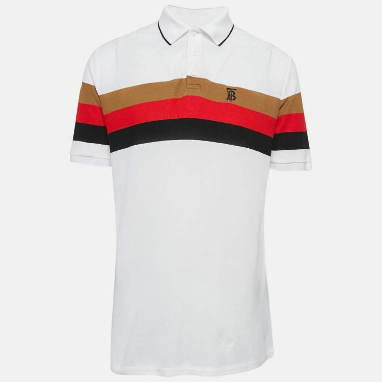 Burberry White Striped Cotton Pique Polo T-Shirt M