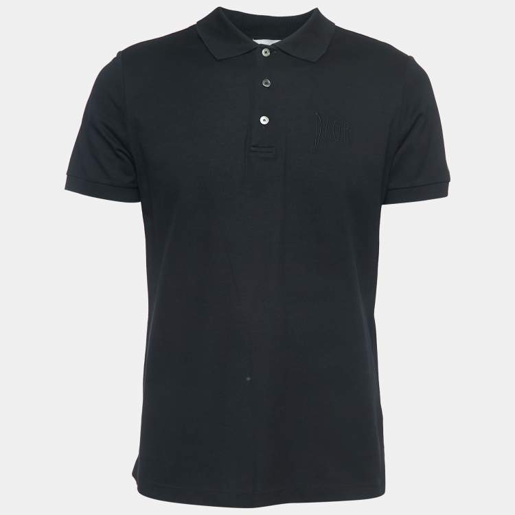 Dior Black Cotton Embroidered Polo T-Shirt M