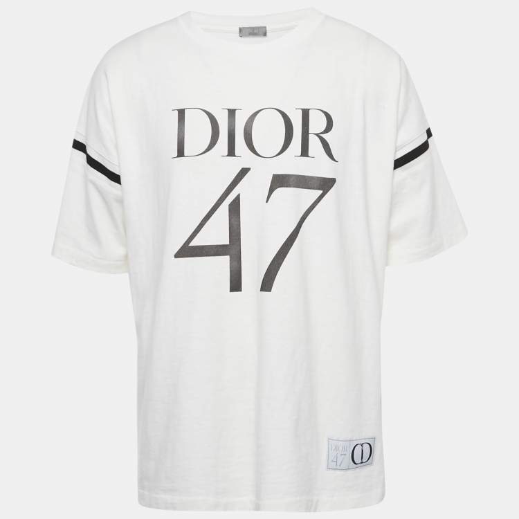 Pre Owned Dior Homme Off White/Black CD 47 Cotton T-Shirt XL