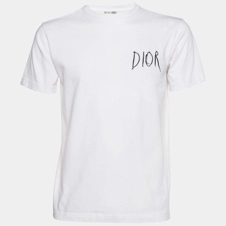 Dior Homme White Logo Embroidered Cotton Crew Neck T-Shirt XXS