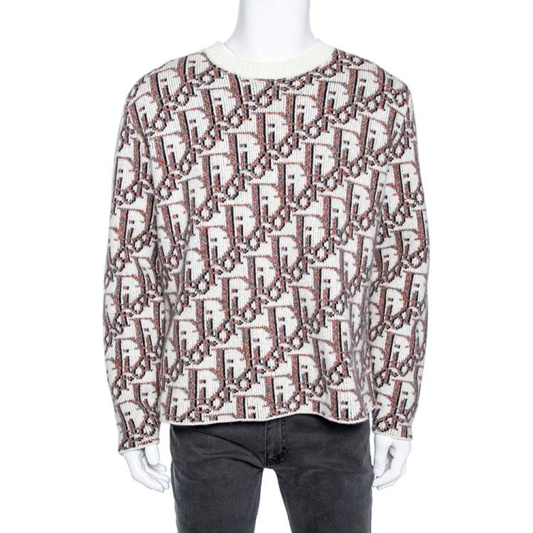 Pre Owned Dior Multicolored Oblique Logo Jacquard Wool & Cashmere Pullover XL