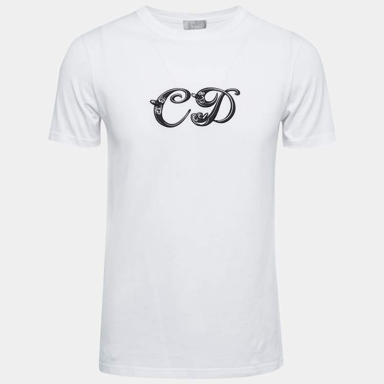 Dior White Logo Embroidered Cotton Crew Neck Half SleeveT-Shirt S