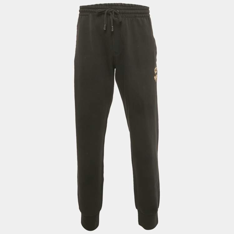 Dolce & Gabbana Black Crown Embroidered Cotton Jogger Pants XXXL