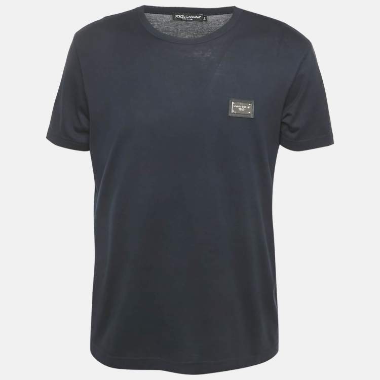 Dolce & Gabbana Navy Blue Cotton Logo Plaque Crew Neck T-Shirt L