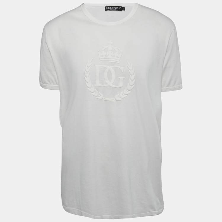 Dolce & Gabbana White Cotton Logo Patch Crew Neck Half Sleeve T-Shirt XL