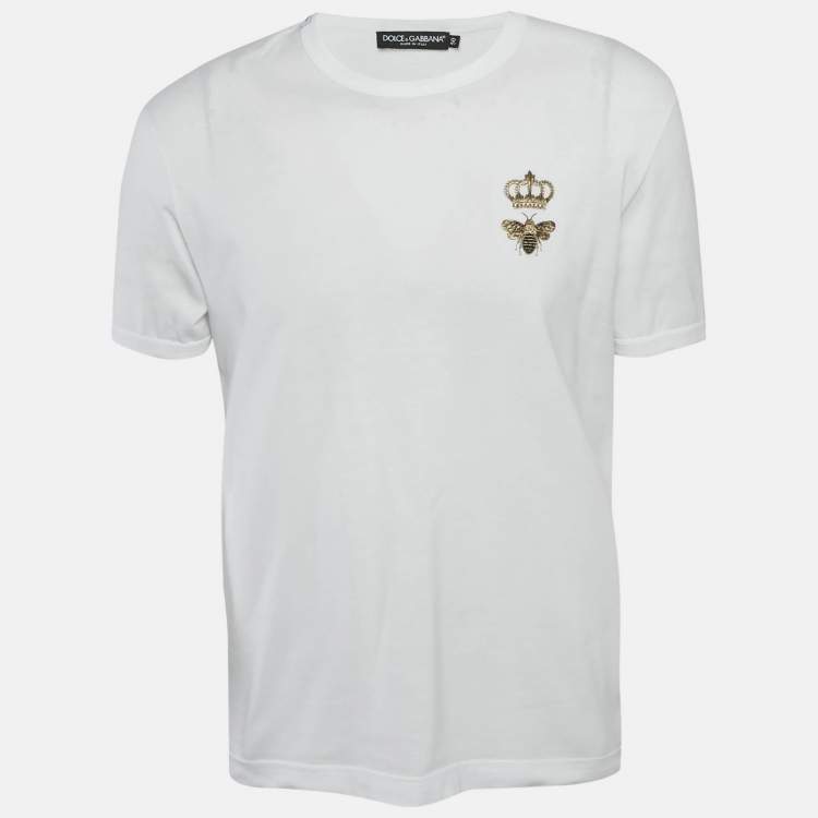 Dolce & Gabbana White Crown & Bee Embroidered Cotton T-Shirt L