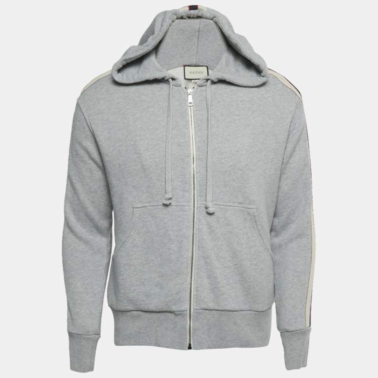 Gucci Grey Web Trim Cotton Zip-Up Hoodie XS