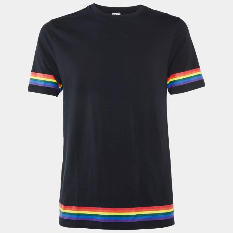 Pre Owned Loewe Black Cotton Knit Contrast Detail T-Shirt S