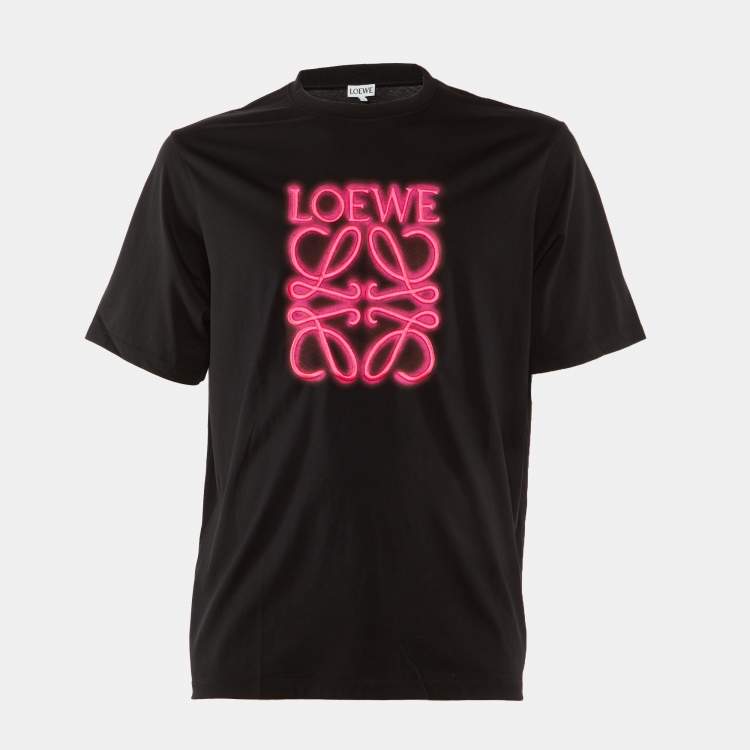 Loewe Black Neon Anagram Embroidered Cotton Crew Neck T-Shirt XS