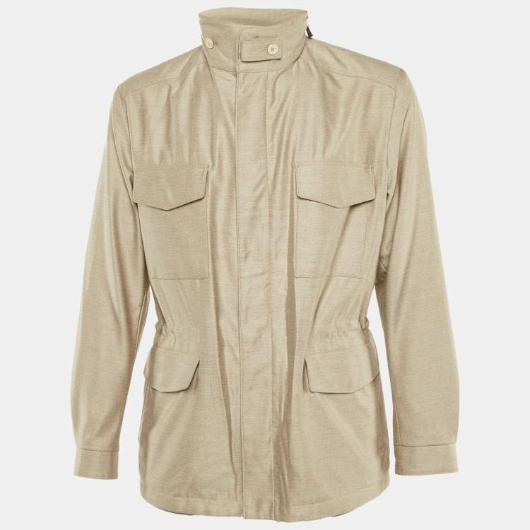 Pre Owned Loro Piana Beige Cashmere Storm System Hooded Field Jacket L