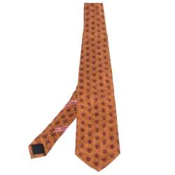 Ermenegildo Zegna Disegno Esclusivo Orange Floral Patterned Silk Tie